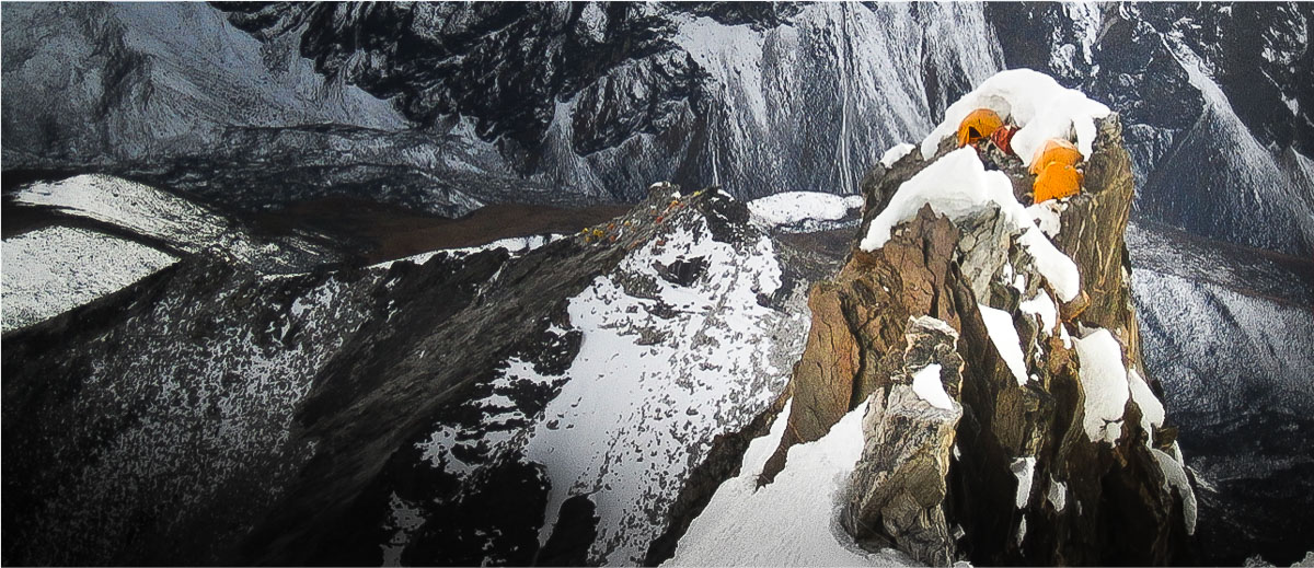 Often called the most beautiful mountain in the world, AmaDablam’s spire-like summit has been tempting alpinists since it was first seen by climbers in the 1950s. Indeed, any visitor to the Khumbu region begins their trek with names like Mt. Everest in their vocabulary, but upon first glimpse of this peak their vernacular quickly expands. Participants on this expedition first climb Island Peak (20,305 ft./6,189 m) as part of the acclimatization process, before heading to the main objective. Island Peak poses no great technical challenges, since the steep portions of the route are equipped with fixed-lines, but the altitude will still make Island Peak a substantial effort. After climbing Island Peak we continue to AmaDablam Base Camp, equipped with a dining tent, sleeping tents, and a cook. Once at base camp, it will take us between six and twelve days to ascend the classic Southwest Ridge, depending upon the health of our team, route conditions, and weather. We will carry equipment up the mountain in stages, which allows us to carry light loads and acclimatize by climbing high and sleeping low to recover. The entire route above Camp I has fixed-lines, which makes the climbing and descent go quickly. On the way to Camp II we will encounter rock climbing in the 5.8 range, while above camp II we will encounter steep snow climbing mixed with rock, and sustained 60 degree ice climbing. The view from the summit includes Mt. Everest, Lhotse, Cho Oyu, Makalu, and dozens of six and seven-thousand-meter peaks.